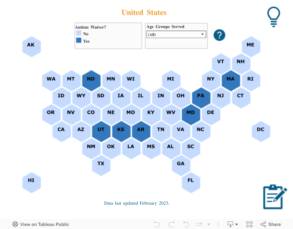 Medicaid waivers are special arrangements that allow a state to deliver home and community-based services (HCBS) to support a disabled person to function in their community. Autistic people are usually served under Medicaid waivers that are designed for people with intellectual and developmental disabilities. Only seven states had autism waivers as of 2022.